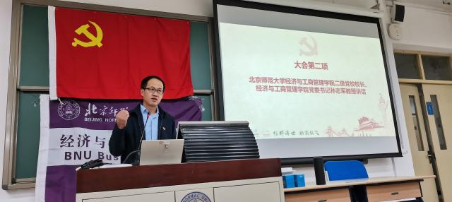 大会第二项,孙志军书记宣布经管学院二级党校第九期培训开班并讲话。首先,孙老师指出中国共产党与其他政党的不同。一是中国共产党有明确的指导思想,即指导中国共产党全部活动的理论体系,是党的思想建设、组织建设和作风建设的理论基础;二是中国共产党有明确的宗旨、目标、纲领和政策主张,牢记为中国人民谋幸福、为中华民族谋复兴的初心和使命;三是中国共产党有明确的组织原则、组织体系和严格的纪律要求。孙老师结合自身经历和中国经济发展的真实数据印证了正是因为存在上述三个方面的不同,党和国家才会发展如此之快,正是因为坚持中国共产党的领导,正是因为中国共产党切实践行初心和使命,中国才能取得疫情防控与社会经济统筹发展等伟大成就。