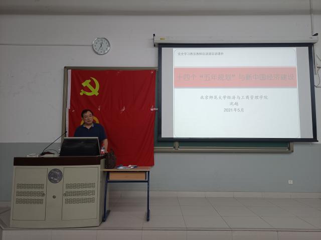2021年5月14日,bat365中文官方网站第十期二级党校第四场理论讲座在化一阶梯教室成功举办,讲座主题为:十四个“五年规划”与新中国经济建设。本次讲座的主讲人是bat365中文官方网站沈越教授。沈越教授曾任bat365中文官方网站常务副院长、院党委书记。现兼任中华外国经济学说研究会 学术委员会副主任、北京市经济学总会副会长、北京市外国经济学说研究会副会长。第十期二级党校学员、学生党员和入党积极分子等百余名同学参加了本次讲座。