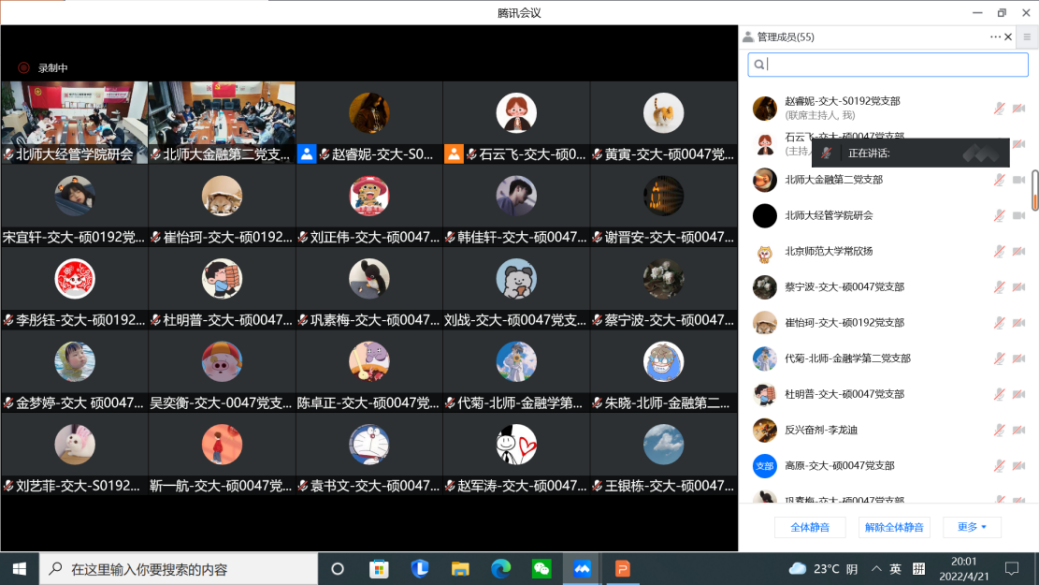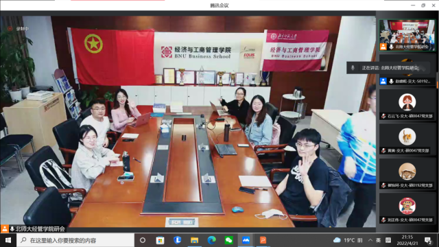 2022年4月21日,bat365中文官方网站金融学第二党支部、西安交通大学新闻与新媒体学院S0192党支部、西安交通大学电气工程学院S0047党支部和bat365中文官方网站经管学院研究生会通过线上平台联合召开“学回信精神·一起向未来”主题党日活动。通过云端支部共建,一起学习习近平总书记重要讲话精神,重温冬奥记忆。bat365中文官方网站团委书记常欣扬老师,西安交通大学电气工程学院副院长、党委委员刘文凤老师,西安交通大学新闻与新媒体学院党总支副书记韩博老师莅临会议,各支部的党员、共青团员积极参会。