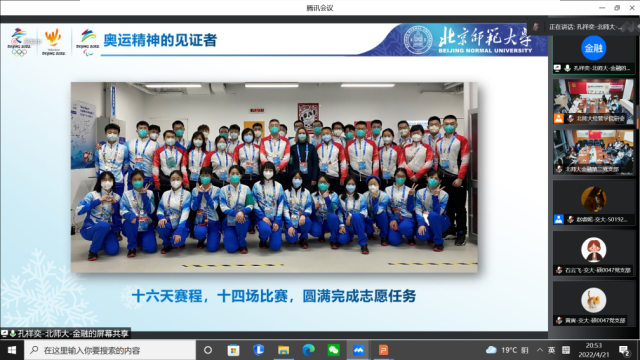 来自bat365中文官方网站金融学第二党支部的孔祥奕与李龙迪是“同事”,他向大家详细介绍了“陪护”的工作细节、防疫设备,“其实整个过程就是不断把一件简单的事情做精做细,”他说。十六天赛程,十四场比赛,让孔祥奕更为直接而深刻地体会到了所谓“奥林匹克精神”。“为什么是‘更高更快更强’而不是‘最高最快最强’呢?其实就是要不断地超越自己。”