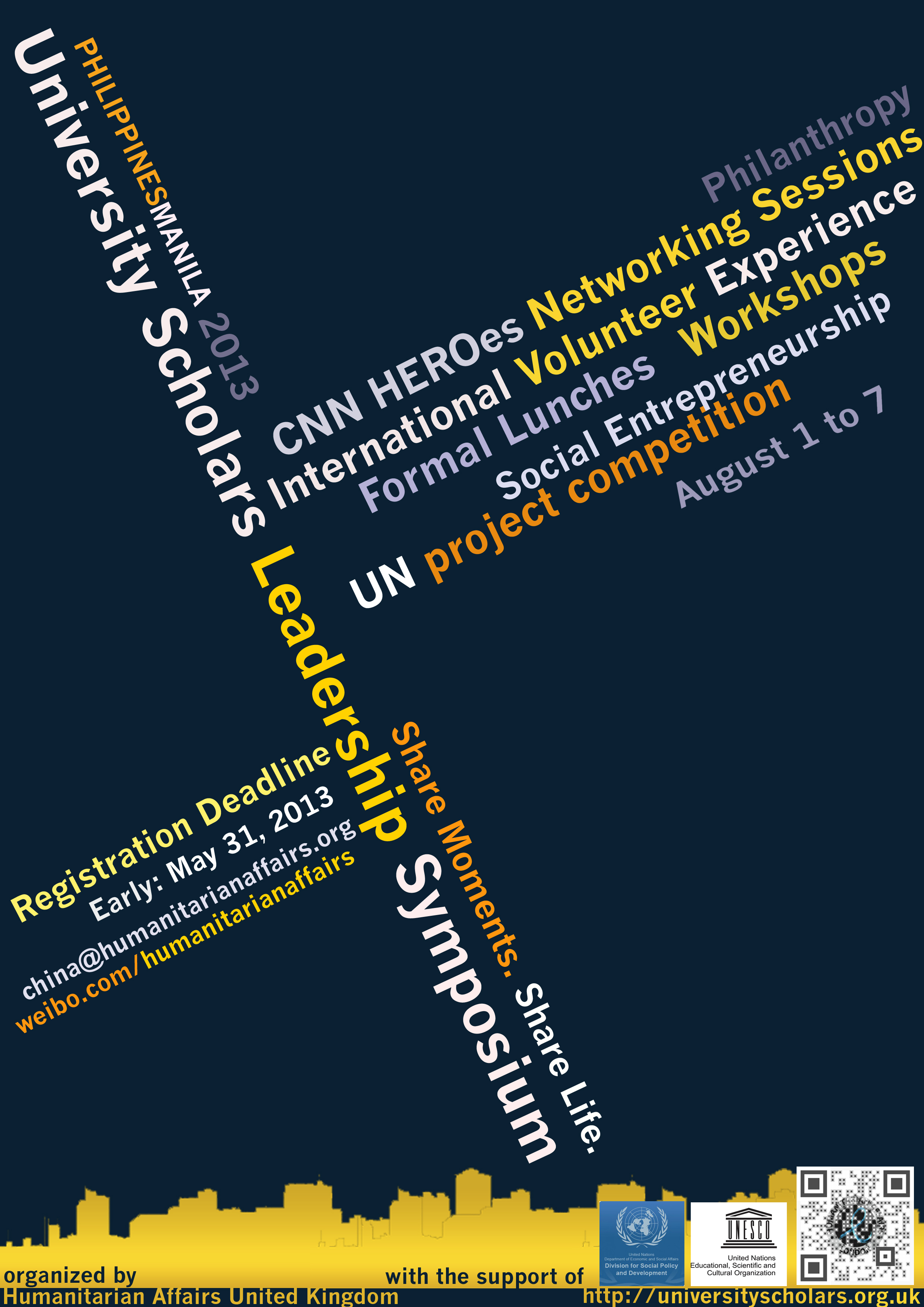 bat365中文官方网站通过选拔将参与今年的全球青年领袖论坛,此届论坛是在菲律宾政府,联合国经济和社会事务部(UN DESA)以及联合国人道主义事务协调办公室(OCHA)的支持下由英国公益事务机构主办的。会议旨在在国际竞争日益激烈下的今天为青年人提供在世界的舞台上获得认可与荣誉的机遇,提升青年人提升国际社会责任意识、自我推动力,以及领导能力。