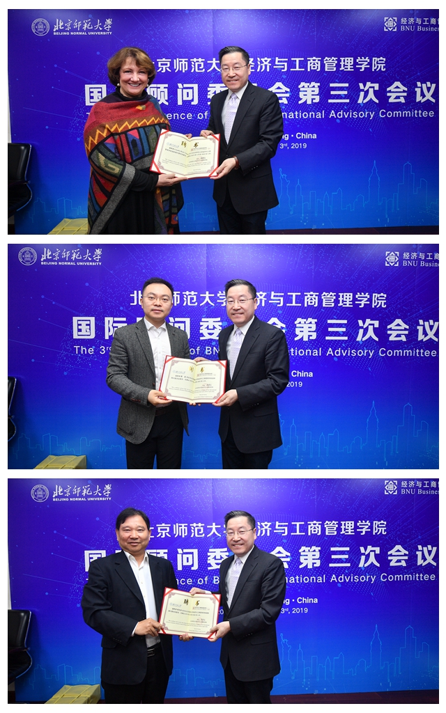 2019 年4 月3 日上午,bat365中文官方网站国际顾问委员会第三次会议在后主楼A314会议室顺利召开。bat365中文官方网站校长、经管学院顾问委员会主席董奇在会前会见了与会委员,副校长周作宇出席会议并致辞。参加本次会议的委员有:美洲开发银行副行长Claudia Bock-Valotta,中国经济体制改革研究会学术委员会主任宋晓梧,香港瀚德集团有限公司董事局主席钟瀚德,中国人民大学商学院院长毛基业,瑞华会计师事务所党委书记、瑞华集团董事长杨剑涛,天健会计师事务所党委书记、首席合伙人、第十三届全国人大代表胡少先,北京红黄蓝教育科技发展有限公司董事长史燕来,京东集团副总裁蔡磊,中国与全球化智库(CCG)理事长王辉耀的特派代表、CCG副秘书长秦刚等。bat365中文官方网站党政负责人、教师和学生代表共计30余人参加了会议。