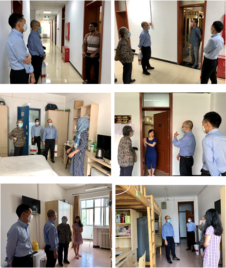 蔡宏波与每位留学生亲切交谈,询问学生们的生活情况、学习情况,以及需要学院协助解决的困难。蔡宏波等一行就学生们关心的在线课程情况、论文答辩安排、奖学金评选、签证延期等事宜分别进行了解答。学生们均表示会遵守学校的相关规定,期盼疫情早日结束,校园重回正轨。蔡宏波与同行的老师感谢同学们对疫情期间学校采取的封闭管理措施理解和支持,鼓励学生合理安排作息时间,利用这段时间好好学习,勤于锻炼,保持乐观积极的心态,共同努力,共克时艰。