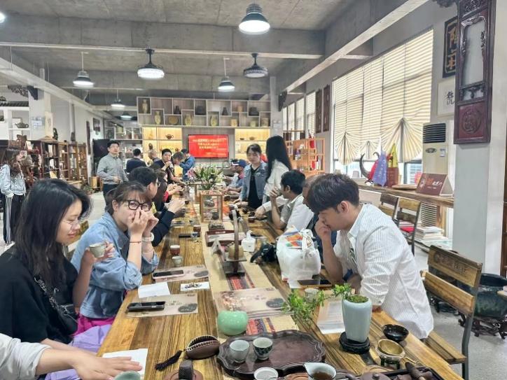 研学实践第三站是文化教育。在宜兴紫砂葛盛陶庄,学生兴致勃勃参与了一站式非遗体验,从紫砂陶泥的拍打、粘连到成型,体会到中华匠人的独守与精心。此外,借由观赏紫砂文化的国际传播,品味紫砂茶艺的清幽意境,留学生深深体悟到中华文化的博大精深。