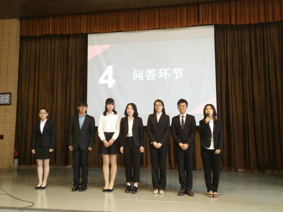 演讲结束,就到了第四项问答环节。各位竞选人站到台前回答各位老师和同学的提问。学生会主席提出有关“面试活动中怎样判断面试者在未来的工作态度”问题;钱梦婷老师询问了各位的优势劣势;周鑫宇老师请竞选者就“学生会应该满足学生需要”、“学生会需要资金支持”两个观点发表自己的看法。竞选者踊跃发言,从不同方面阐述了自己的思考和主张,做出了精彩的回答。