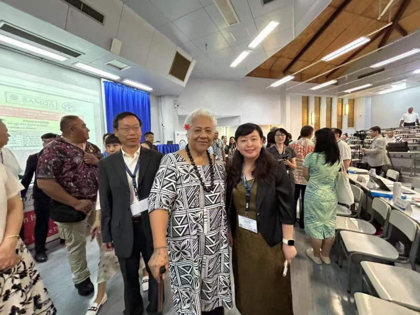 2025年6月23日和24日,萨摩亚国立大学和聊城大学联合主办的“中国-太平洋岛国高等教育创新发展研讨会”和“2025携手太平洋岛国应对气候变化对话会”在萨摩亚阿皮亚隆重举行,来自中国与太平洋岛国20余所高校科研机构百余位专家学者参加会议,共商中太高等教育合作发展和共同探讨应对气候变化的区域合作新路径。开云kaiyun官方网站副院长张颖教授应邀参加。萨摩亚总理菲娅梅·内奥米·玛塔阿法、中国驻萨摩亚大使费明星致辞。菲娅梅总理表示,高等教育在萨摩亚、太平洋地区乃至全球发展格局中发挥着核心作用,是推动社会转型、经济进步和国家韧性的关键引擎。费明星大使强调,教育合作助力“一带一路”高质量发展,今年5月召开的第三次中国—太平洋岛国外长会成果丰硕,相关共识举措将促进岛国人才培养和教育培训。张颖教授做了题为《美国文化行动在太平洋岛国的现状、影响》的学术报告,并向与会嘉宾介绍了北京外国语大学的历史和办学特色。