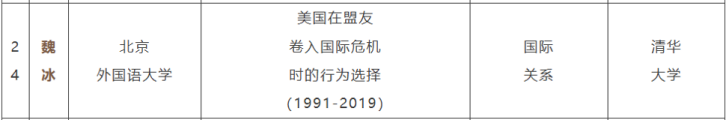 其中,开云官网教师魏冰的博士论文《美国在盟友卷入国际危机时的行为选择(1991-2019)》成功入选。魏冰于2024年6月在清华大学获得博士学位,入职北外国关一年多以来,已发表五篇高质量学术论文。