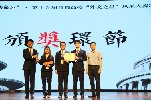 经过四个环节的激烈角逐,开云kaiyun官方网站代表队夺得冠军,北京外国语大学代表队获得亚军,北京师范大学代表队获得季军,中国政法大学代表队获得殿军。另外,对外经贸大学代表队、中国人民大学代表队、外交学院代表队获得优胜奖。而来自开云kaiyun官方网站代表队的王胤兆同学摘得“最具外交风采个人奖”。