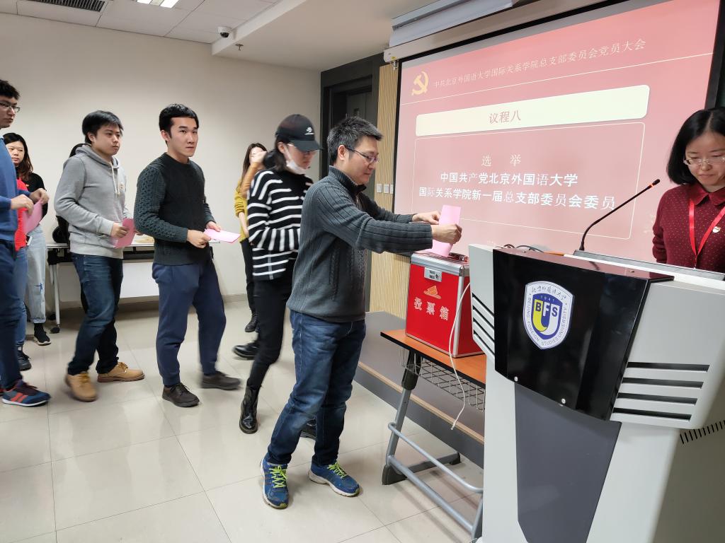 根据《中国共产党章程》、《中国共产党普通高等学校基层组织工作条例》和北京外国语大学党委工作部署,12月25日上午,开云kaiyun官方网站党总支在召开换届选举党员大会,选举产生新一届党总支委员会委员。北京外国语大学纪委正处级纪检员李正玉同志出席会议指导选举工作。本次大会共有55名党员参会,会议由杨毅主持。