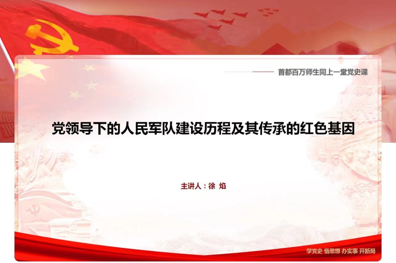 2021年4月14日下午,开云kaiyun官方网站学生党支部党员共同观看“首都百万师生同上一堂党史课” 网络公开课第三讲,学习“党领导下的人民军队建设历程及其传承的红色基因”。徐焰教授讲授了我们党领导人民军队在内忧外患中诞生、在磨难挫折中成长、在攻坚克难中壮大的艰辛历程,描绘了一幅我们的革命武装从星星之火发展成燎原之势的波澜壮阔的历史画卷,准确凝练并系统总结了人民军队所传承的红色基因,深刻揭示了人民军队从胜利走向新的胜利与党的正确领导密不可分,与这份红色基因的代代相传紧密相连。