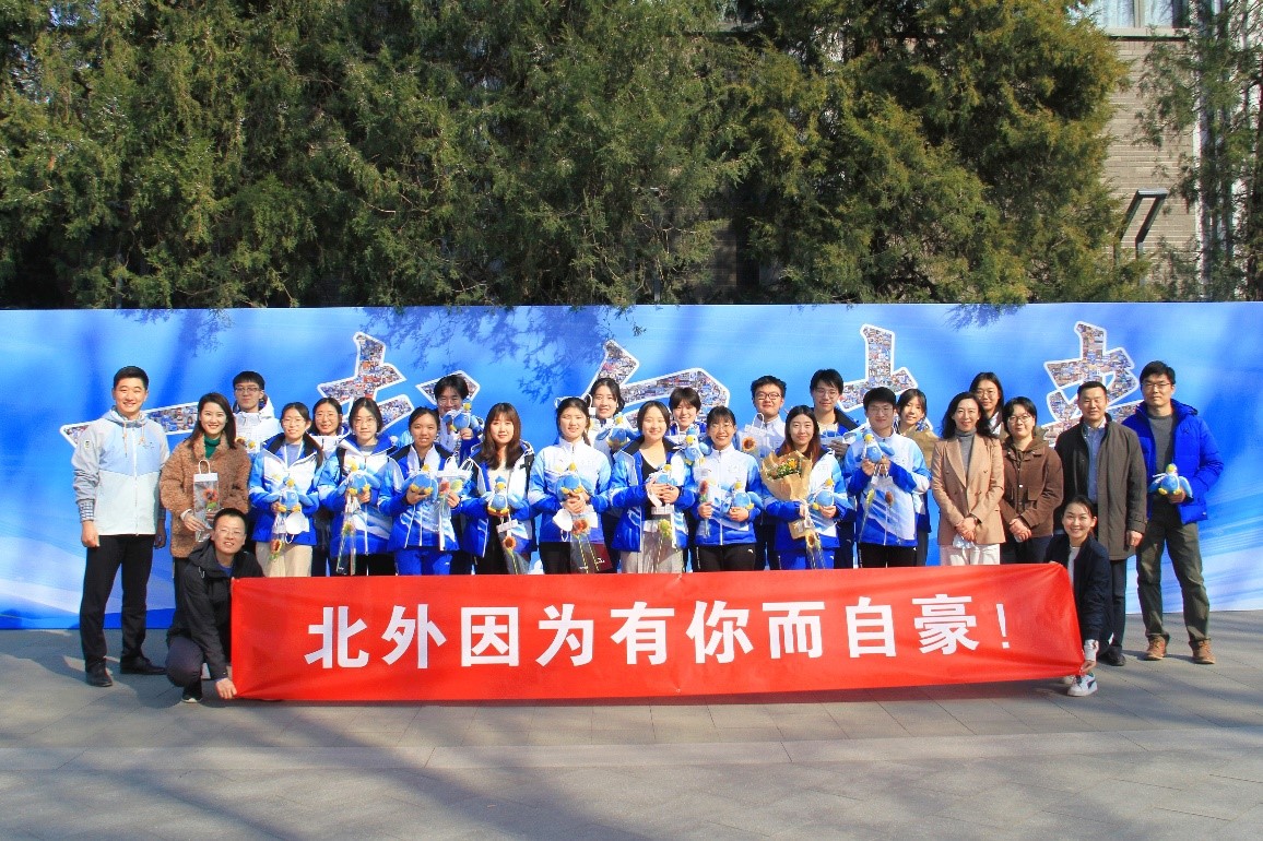 38日下午,开云官网首批首钢滑雪大跳台冬奥师生志愿者圆满完成北京2022年冬奥会志愿服务任务,从隔离地点平安返校。学院党总支书记张效民老师、辅导员钱梦婷老师、辅导员张翊老师及同学们早早等候在东校区文化广场,热烈欢迎志愿者们凯旋。