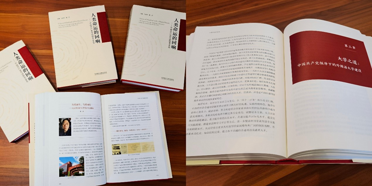 《人类命运的回响——中国共产党外语教育100年》一书由我校党委书记王定华、校长杨丹主编,紧密围绕中国共产党成立100周年这条主线,回顾了自1921年中国共产党成立以来,在党的领导下中国外语教育走过的艰苦开创、曲折探索与光辉发展历程,分奋进之路、外语之兴、大学之道、专业之盛、名家之忆、文明之基六个部分。各章节以时间为线,再现中国共产党成立后中国外语教育的整体发展历程;以语种为轴,呈现英语、俄语、德语、法语、西班牙语、阿拉伯语、日语和非通用语种百年发展建设历史画卷;以院校为基,记述不同外语专业院校学科建设与人才培养模式探索;以人物为篇,特邀在外语教育和翻译等领域的代表人物回顾往昔,体现有温度的外语教育发展历程。