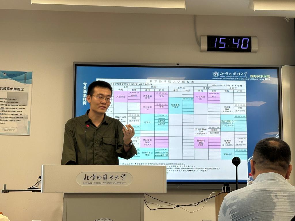 释启鹏老师首先代表学院向研究生新生致以热烈的欢迎与祝福,并简要介绍了北外国关学院研究生教育的整体概况。随后,宋亦明老师针对研究生阶段的学习特点,就“本科生与研究生的差异”“研究生必读书目推荐”及“研究生学习建议”等话题进行了深入剖析与指导。他鼓励研究生们迅速适应新身份,深入钻研学术,同时学会平衡学习、工作与生活的关系,努力成为德才兼备的优秀人才。