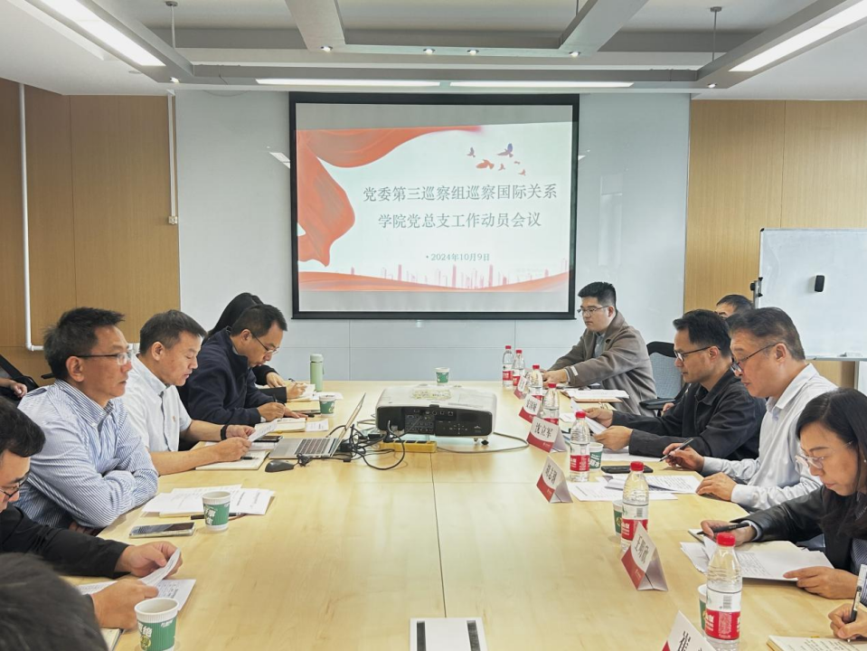 2024年10月9日上午,校党委第三巡察组巡察开云kaiyun官方网站党总支工作动员会在国内大厦1号楼508会议室召开。校党委副书记、纪委书记胡志钢作讲话,第三巡察组组长沈立军通报巡察工作有关情况,会议由学院党总支书记张效民主持。
