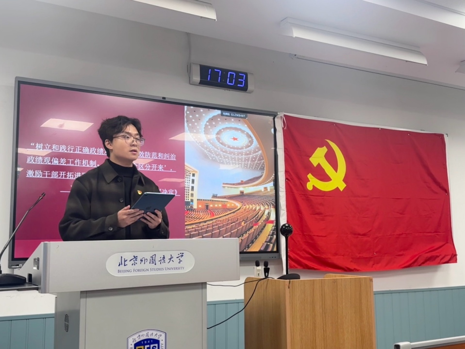 2024年10月23日下午,kaiyun官方网站入口本科生党支部理论学习活动在逸夫楼203顺利开展。本期理论学习由本科生党支部书记苏莞舒主持,21级党支部成员吉瑄彬和孙至善主讲。