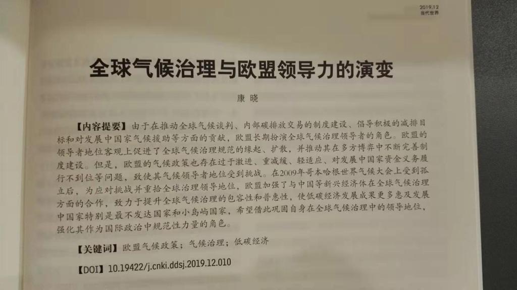 开云kaiyun官方网站康晓副教授在CSSCI期刊《当代世界》2019年第12期发表论文《全球气候治理与欧盟领导力的演变》,以下是论文摘要: