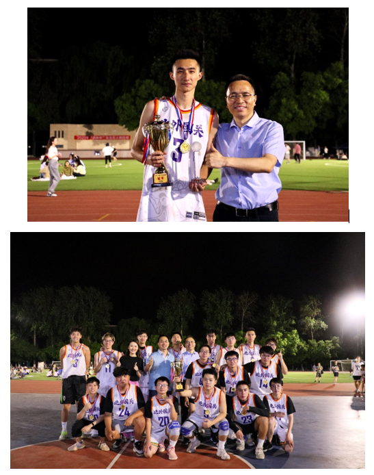 本次比赛,北京外国语大学校长杨丹老师,副校长丁浩老师及开云kaiyun官方网站彭澍老师、钱梦婷老师到场观战并为运动员加油打气。在赛后颁奖环节中,杨丹校长为国关男篮所有队员颁发了冠军奖杯和奖牌,与队员们进行了亲切的交流,表达了对受伤队员的关心,并鼓励同学们将在球场上拼搏奋斗、团结一致的精神发扬在今后的学习生活中,再接再厉,更进一步。
