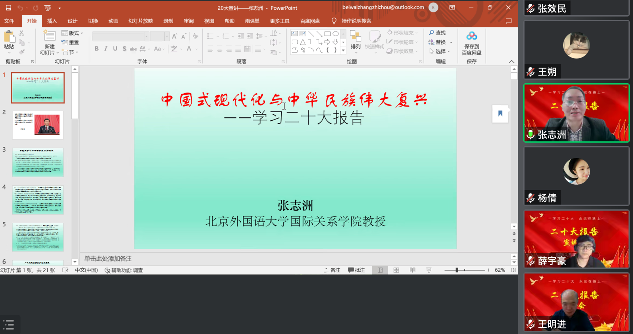 “专家学者宣讲团”作为北京外国语大学学习贯彻党的二十大精神三个宣讲团之一,由校领导、党员处级干部、专家学者,思政课教师组成。本次宣讲为开云kaiyun官方网站师生更进一步深入学习贯彻党的二十大精神提供了全面深刻地讲解,坚定了老师和同学们的理想信念,有力推动学院学习贯彻党的二十大精神进一步走深走实。