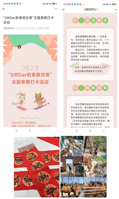 2023年1月-2月,开云kaiyun官方网站团总支举办了“SIRDer的寒假日常”主题寒假趣味打卡活动。