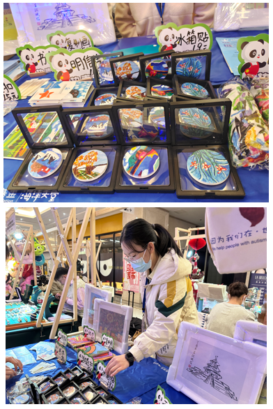 本次爱心义卖活动所售物品是“星星雨志愿者”在全国各地征集的根据自闭症小朋友们的绘画制作而成的衍生品,包括冰箱贴、书签、帆布包、钥匙扣等。志愿者同学们在活动过程中积极向大家介绍义卖物品的寓意,并向大家科普自闭症的相关知识,鼓励大家多多关注自闭症群体与“星星雨志愿者”公益组织。两天的义卖共筹集善款1216元,这些款项将全部用于帮助孤独症儿童家庭继续接受社会化训练,帮助这些孩子们尽快融入社会。