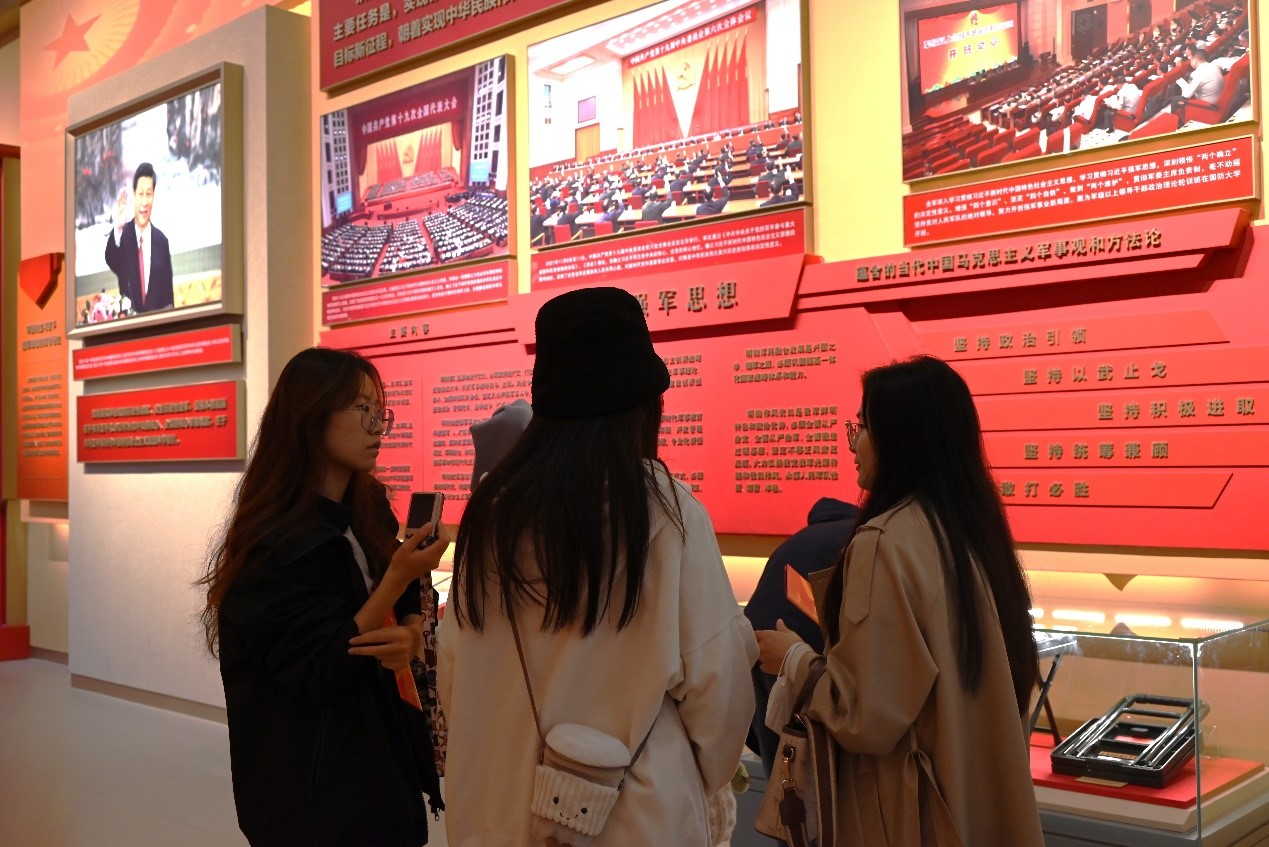 同志们有序参观了中国共产党领导的革命战争陈列、新中国国防和军队建设陈列、中国历代军事陈列、军事科技陈列等展陈,在一件件文物、模型前驻足欣赏,感受中华民族在历史长河中上下求索、绝不屈服的战斗精神。