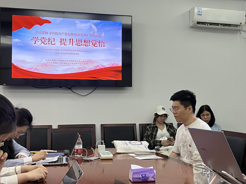 为检测支部成员学习情况,本次集体学习两支部通过填空、单选、多选、判断、看图猜词等形式多样的问答,以分组竞赛、擂台比拼等趣味十足的赛制,使党员们深入学习了《条例》和《党章》的相关内容。开云kaiyun官方网站研究生第一党支部书记杨孟昊指出,各位党员和积极分子要始终加强政治学习,坚守纪律规矩,希望各位同志把党纪学习内化于心、外化于行,时刻保持高度警醒。欧洲语言文化学院本科生党支部副书记李海月认为,作为新时代的青年党员,一定要带头学习党纪,弄清楚自己该做什么、不该做什么,能做什么、不能做什么。