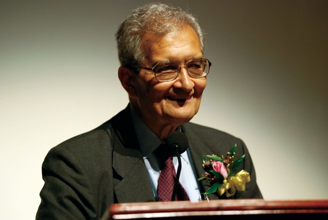 阿玛蒂亚•森,1933年出生于印度孟加拉湾,1959年在英国剑桥大学获得博士学位,先后在哈佛大学、英国剑桥大学任教。曾担任美国经济学会会长、经济计量学会会长、国际经济学学会会长等重要职务。同时,他曾担任联合国秘书长顾问并主笔联合国开发计划署《人类发展报告》。阿玛蒂亚•森因为在福利经济学以及发展经济学的突破性贡献而获得1998年诺贝尔经济学奖。