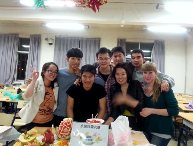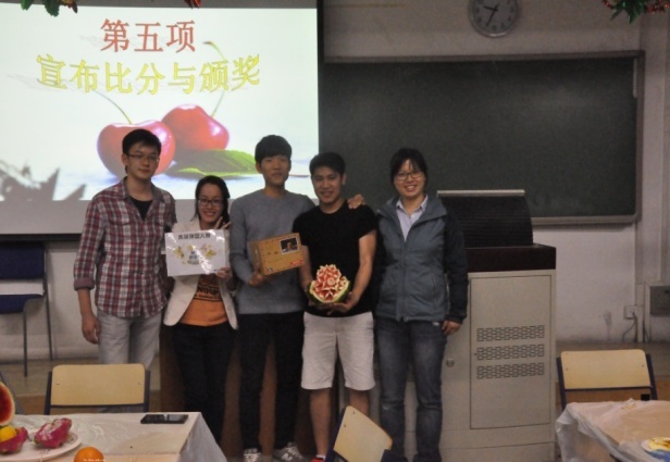 4月25日,bat365分团委组织“水果拼盘比赛”,比赛在愉悦而不失紧张的状态中进行,权益部准备的水果种类繁多,选手更是创意无穷。一件件精美制作的水果拼盘显得格外香甜诱人。来自哈萨克斯坦,越南,蒙古,韩国的6名同学小组用西瓜做成精致的雕花作品,让人惊叹,获得最佳创意奖。分团委书记张璇老师为他们颁奖,并合影留念。
