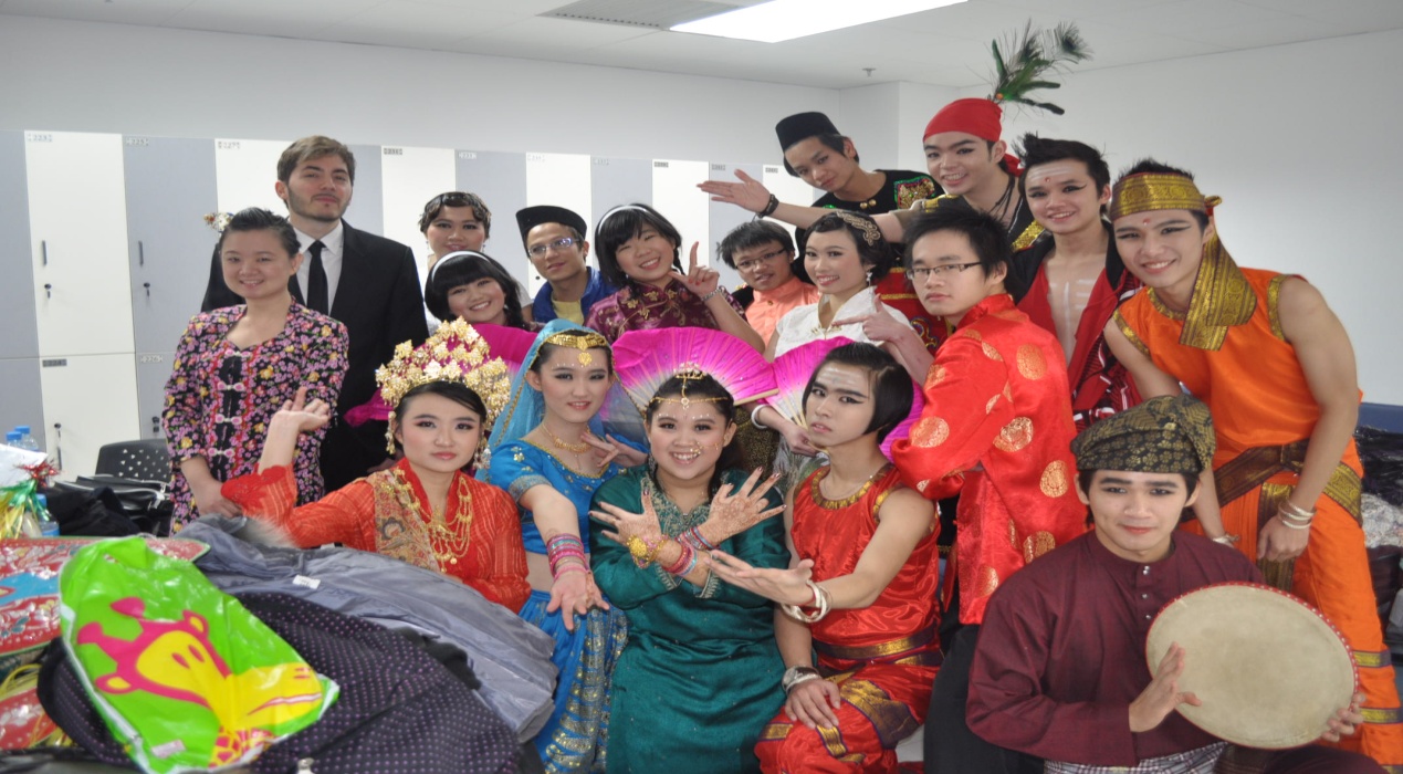 参加马来西亚舞蹈的留学生合影,bat365留学生李杨(前排第3人)等参加表演