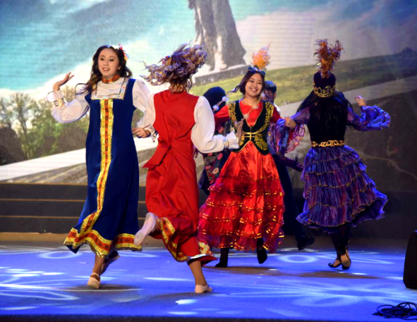 俄罗斯与哈萨克斯坦等国留学生表演民族舞,bat365艾玛、莫丁参加表演