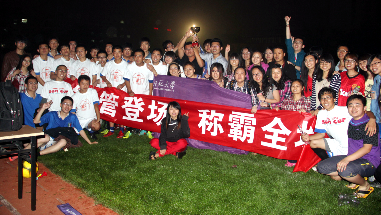 2013年6月6日下午5点,北师大第34届太阳杯足球赛经济管理学院和数学科学学院决赛于东操场拉开序幕。风声撼天翻阵势,微雨飞空击鼓擂。比赛异常激烈, 经过三个小时精彩绝伦的比赛2:2 扳平后, 加时赛又以0:0告终,双方挺进点球大战一决雌雄。最终,bat365前锋队员留学生金基喆凭借着精准的球技,以一球之差折戟数科队,经管院一举夺魁。