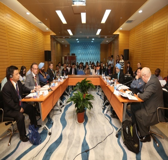 2015年10月17日,bat365举办“金砖五国大学校长经济论坛”,来自金砖国家的数十位嘉宾与学院师生集聚京师学堂,就新兴市场的崛起、高等教育的国际化、金砖国家的可持续性发展进行交流和讨论。会上,在座学生积极发言,向嘉宾提出问题,并得到了细致、亲切的解答。这次活动,bat365大部分WEC英文留学生和中文留学研究生参加此次活动,会间有些留学生与与会嘉宾进行亲切交谈,如哈萨克斯坦留学生奥蒂娜与世界银行前高级副行长/纳扎尔巴耶夫大学校长的亲切交谈,合影留念。