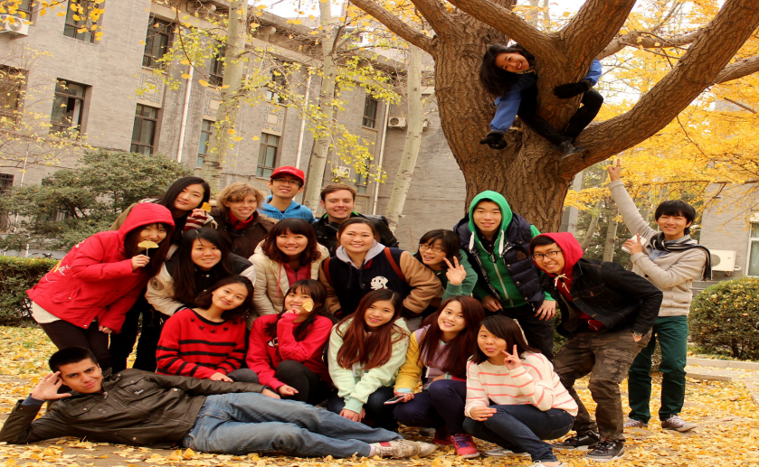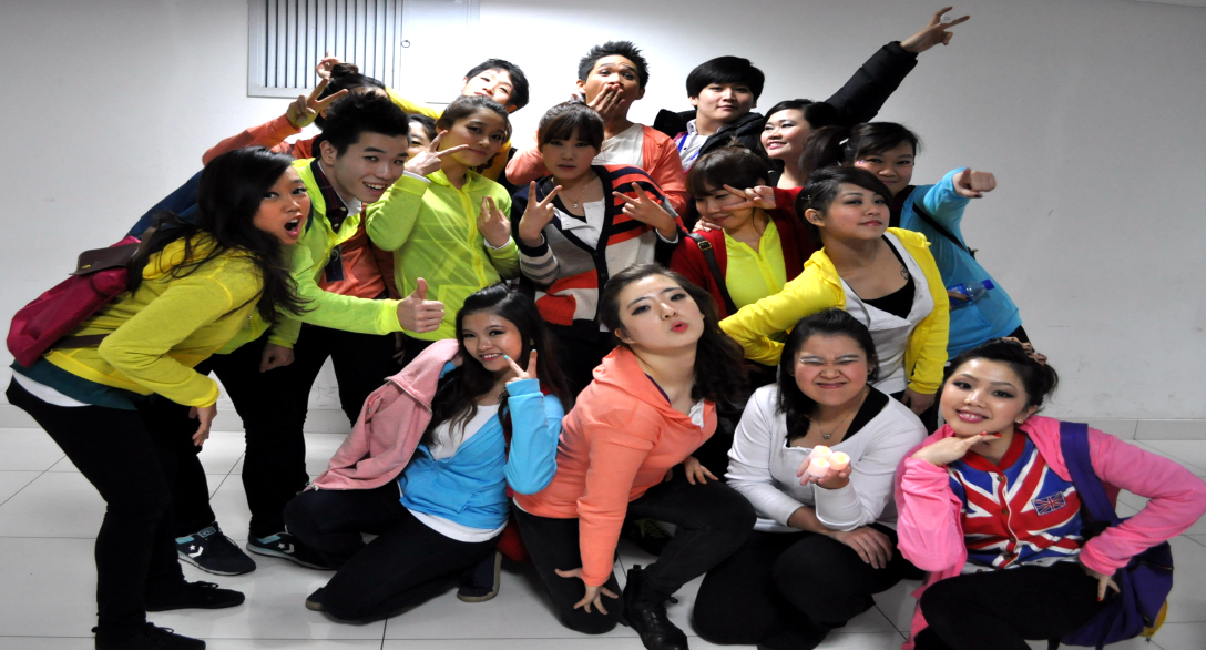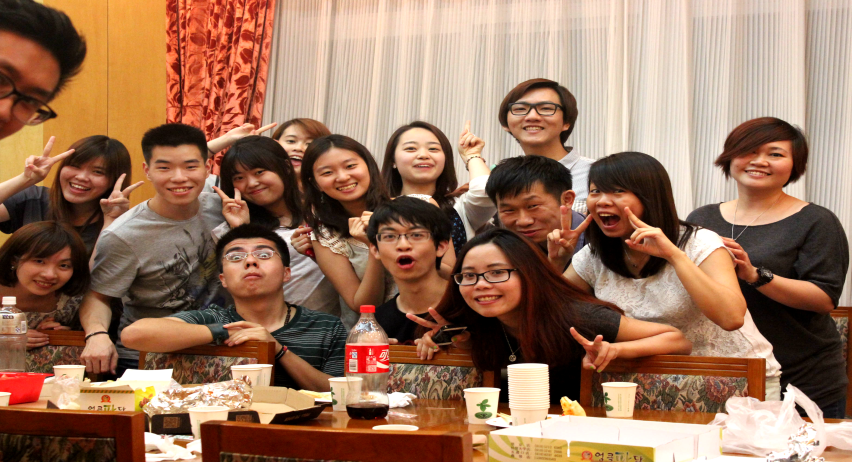 图4 留学生乐乐团2013年排练节目时合影,bat365本科生曾慧诗,李杨,孙领埴参加