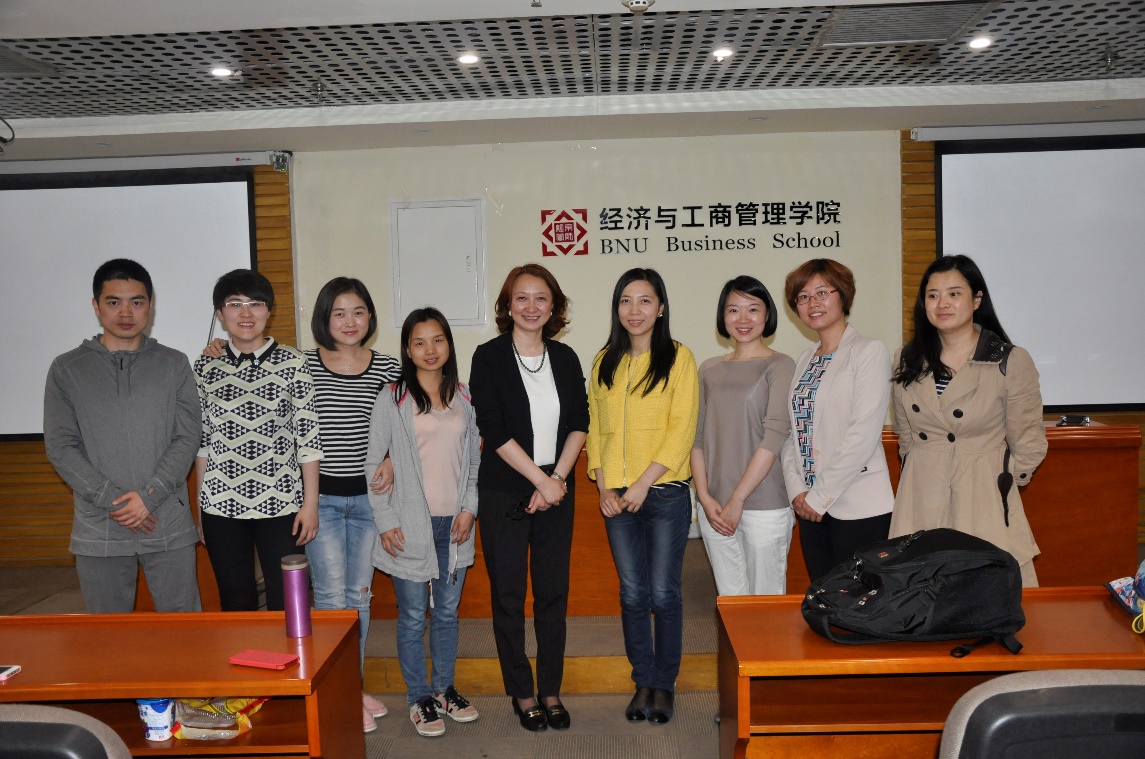 On May 9th of 2015, a themed lectureabout Female Career Development sponsored by the MBA Center of BNU Business School was held in Jing Shi Plaza. The speaker, Ms. Liu Yanling is a famous alumni of BNU, who is working for Yiwei management consulting co., LTD. The host of this even was the MBA Education CenterCareer Development Director Ms. Li Jingya.