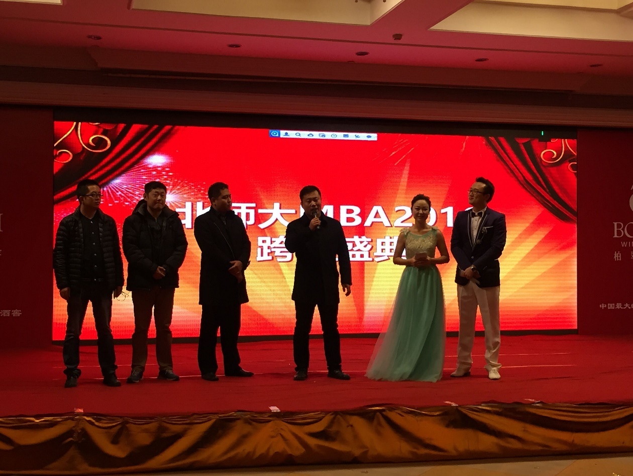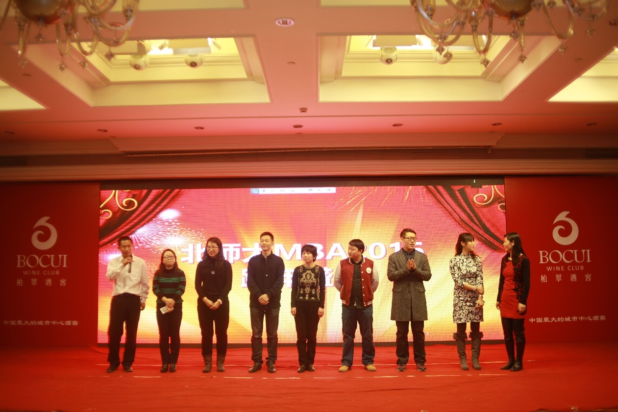 Sponsored by MBA Center of Beijing Normal University (BNU) and supported by Activity Department of the Association, the 2016 BNU New Year Party of “Leaping Over 2015,Witnessing Our Growth” held a grand opening in Bocui Wine Club in anticipation of many studentson December 27, 2015. Nearly 200 people including MBA students of 2015 Grade, teachers, members of MBA Union Presidium, and guests from related universities attended this celebration.
