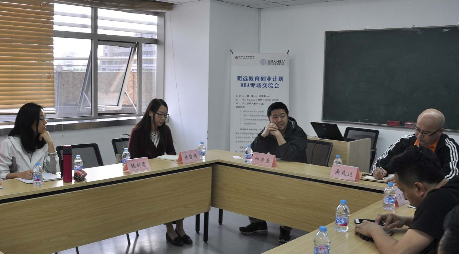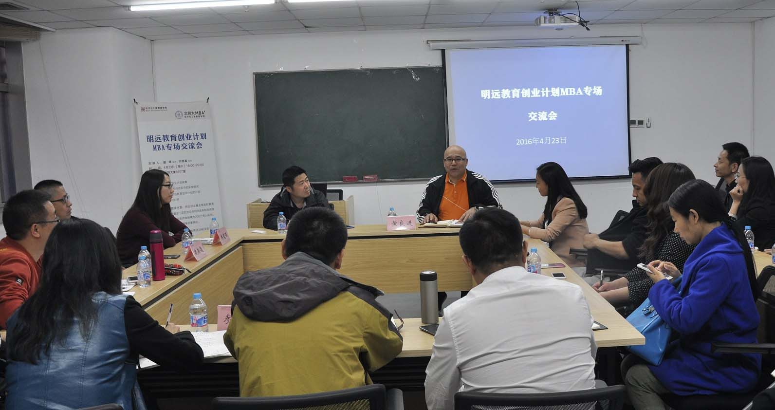 On April the 23rdof 2016, the Mingyuan Education Entrepreneurial Plan MBA Communication Meeting was held in Jing Shi Building. Hosted by MBA Student Union Vice Secretary Fang Jinbao, BNU Education Foundation Project Management Department Head He Enji, BNU Business School MBA Center Director Huang Liangjin, MBA Center teacher Wang Lulu and two students who has received support from the Mingyuan Education Foundation were invited to share their experiences in this event.