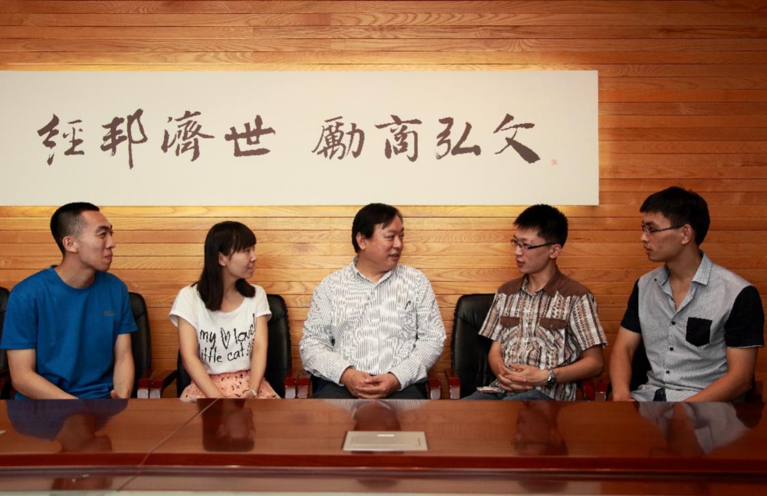 8月15日下午,我们在后主楼1722有些紧张地等待沈老师的出现。预报里北京又将要下雨,天色阴沉沉的。会议室里开了灯,映得窗外愈加暗沉,下午三点钟便有些傍晚的味道。正在这时,沈老先生穿着衬衫和短裤,推开门,拎着伞就进来了。“你们好!“老先生用洪亮的声音笑着说道。