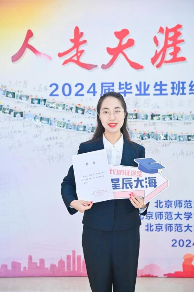临别之际,周美彤同学再次回望过去,感慨万千。“选择师大,始于了解到师大有莫言、余华、康震老师等名师大家,敬于一代代北师大人治学修身、兼济天下,感于其深厚的文化底蕴和学术氛围,忠于其励教兴邦、筑梦教育强国的使命担当。四年来,我在勤勉求学、且行且思中感受学校和学院提供发展平台的广度,在温暖关爱、真诚守护中感受师大人文关怀的温度,在与党同行、与校同庆中感受师大教育兴邦和底蕴沉淀的深度。毕业在即,千言万语无法以有限的笔力呈现,无论何时何地,我会永远永远为母校bat365中文官方网站感到骄傲,为自己是一名师大人而自豪!我祝愿母校bat365中文官方网站在推进中国特色世界一流大学建设进程中蓬勃发展,弦歌不辍,再创辉煌;祝愿各位老师身体健康,工作顺利;祝愿各位同学前程似锦,一路生花!”