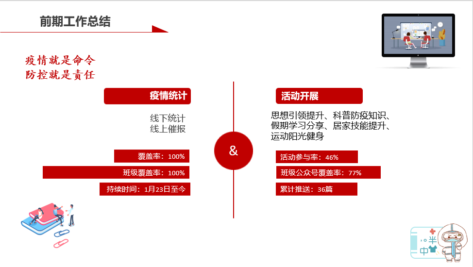 通过本次会议,进一步明确了学院防疫期间的班级建设工作重点,为新学期班建工作的顺利开展奠定了良好基础。