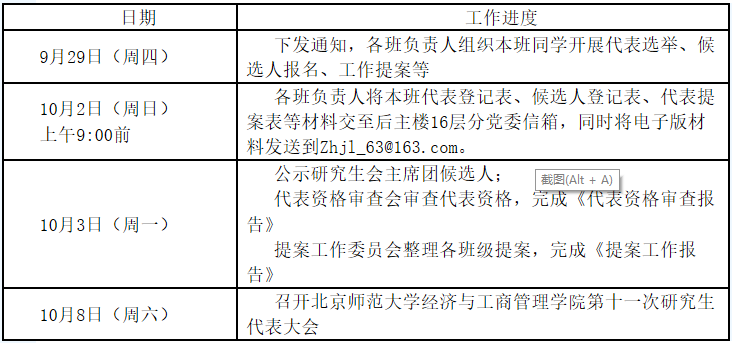 1、成立以团支书、班长为主的研代会筹备工作小组,把筹备工作与民主工作相结合,秉承“公正、公平、公开”的原则,依据《bat365中文官方网站第十一次研究生代表大会代表产生办法》(见附件1)以及《bat365中文官方网站第十一次研究生代表大会候选人产生办法》(见附件2)的要求,按照给各班下达通知中的名额(见附件1),精心组织本班开展民主推选,产生本届研代会的代表和候选人,并在班内做好公示,确保研代会代表和候选人的推选工作的有序而规范地进行。