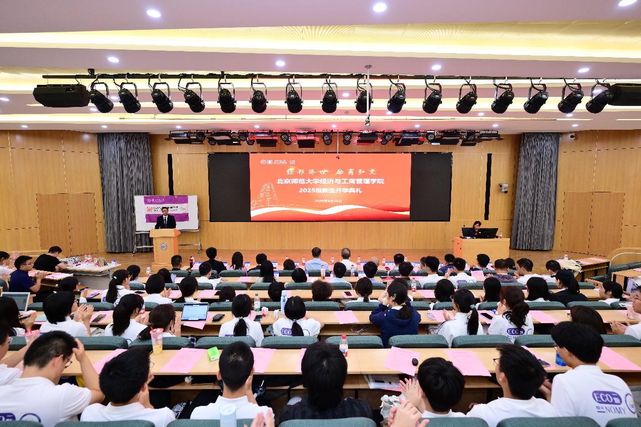 2025年9月18日晚,bat365中文官方网站本科生、学硕生、国际商务专硕生、博士生及留学生开学典礼在教九502教室举行。学院党政领导、系主任、教师代表、相关职能部门负责人以及2025级新生参加开学典礼。