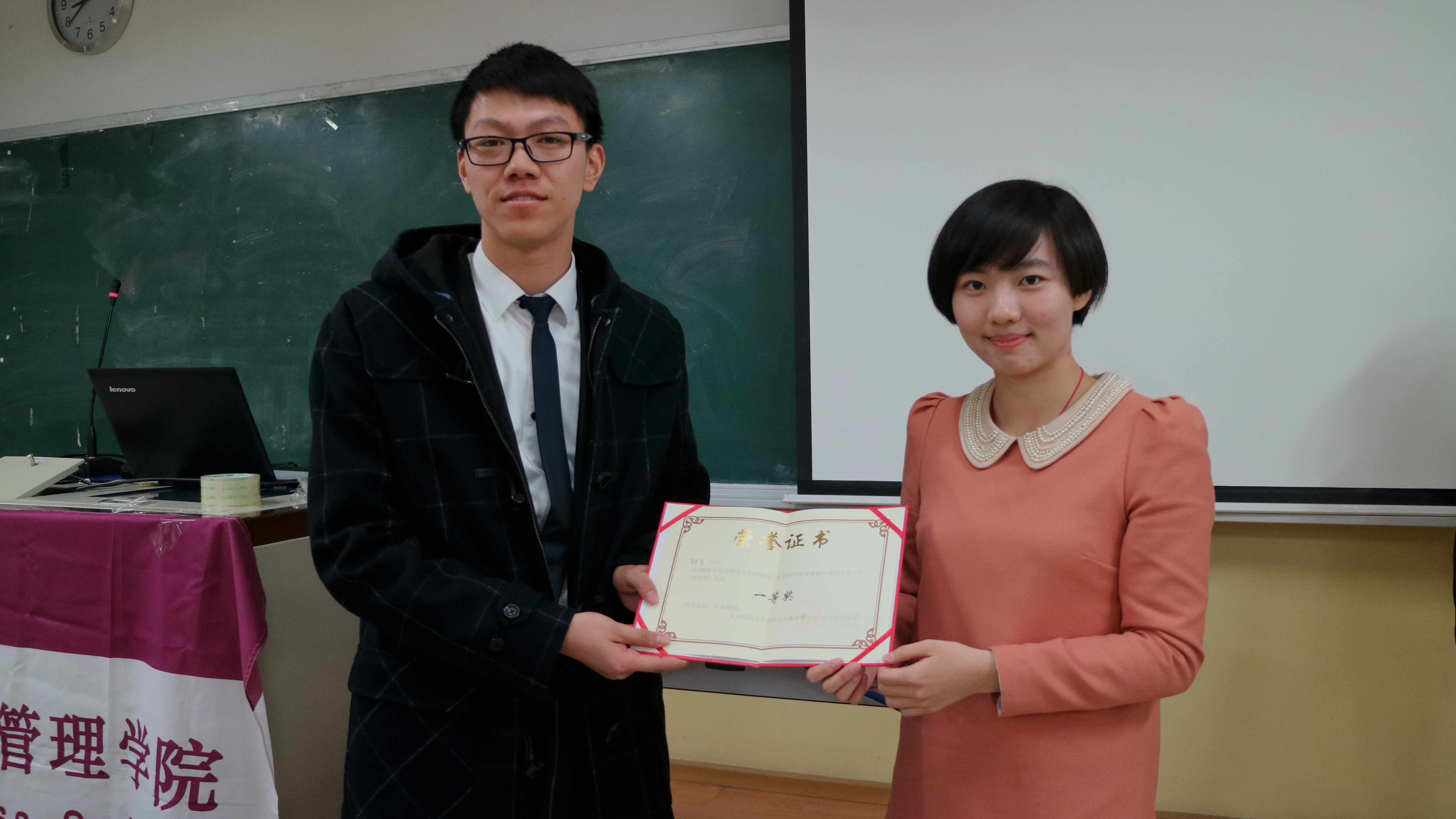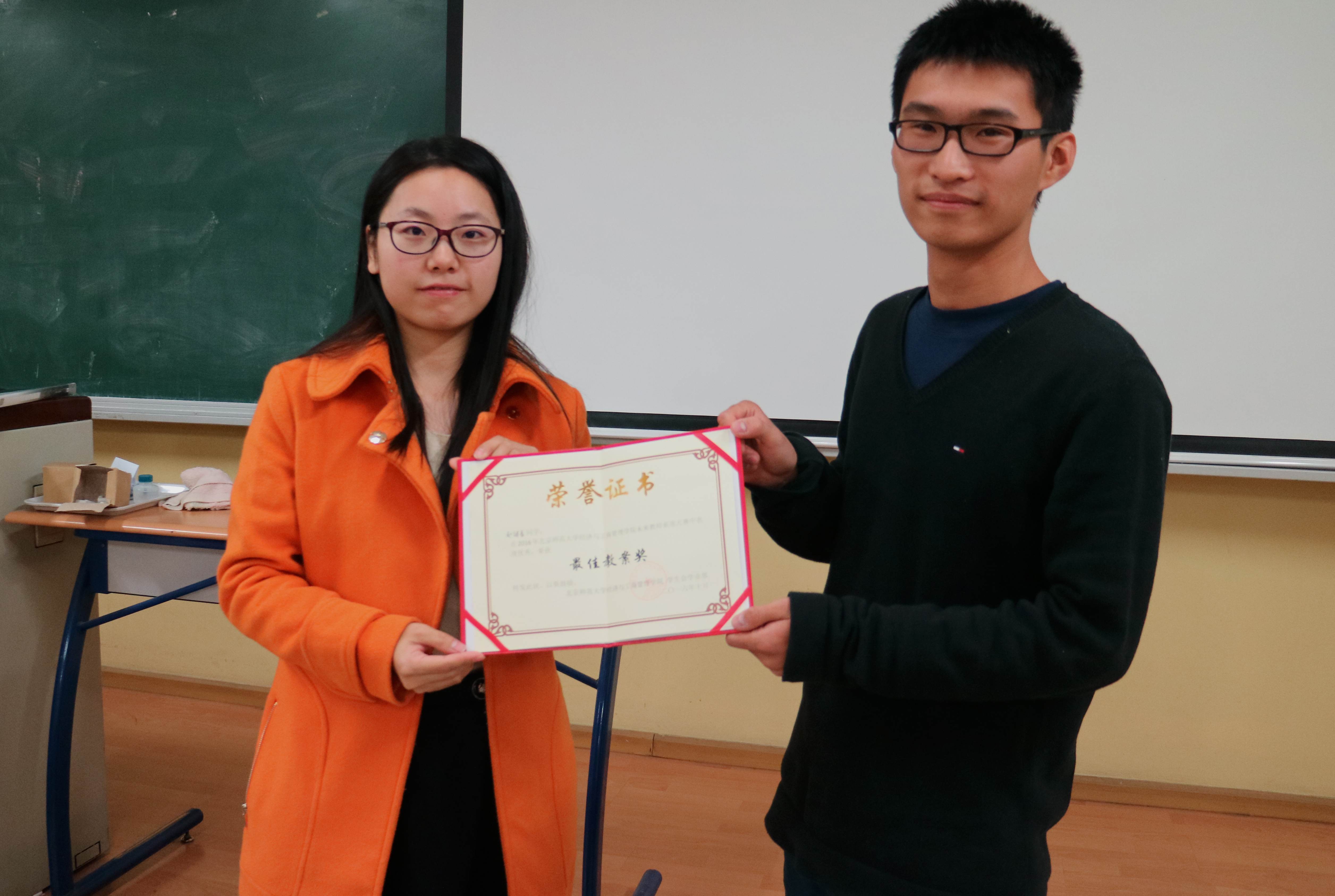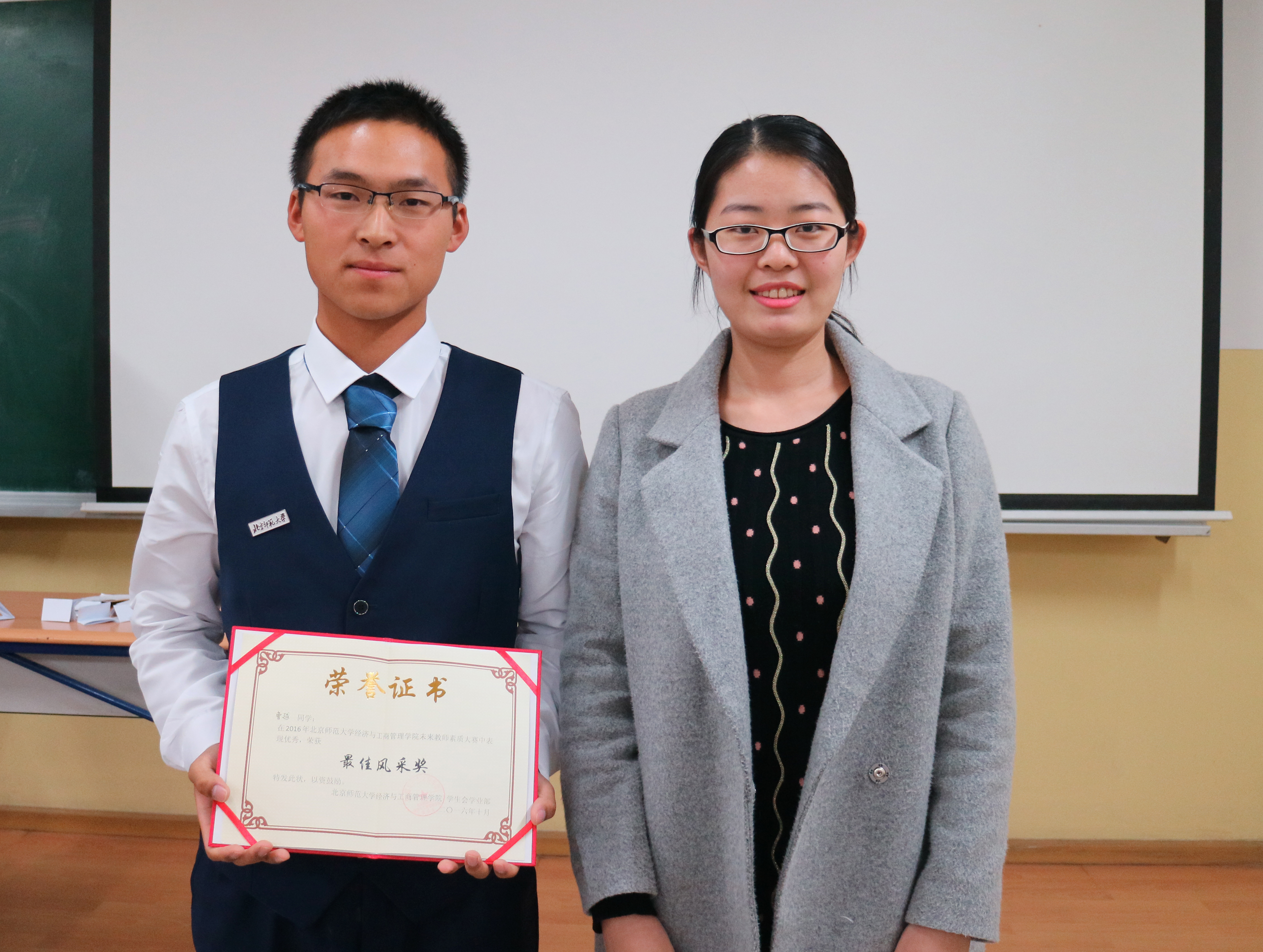 在各位未来教师激情澎湃地讲课声中,不仅台上的同学找到了授课的技巧与方法,而且在座的我们也同样学到了相关的知识。历时2个多小时的经管院未教赛复赛就要告一段落了。最终获得一等奖的是来自国贸的朱思昊同学,获得最佳教案奖的是来自金融学的赵健豪同学,获得最佳风采奖的是来自经济学的曹越同学。在此以热烈的掌声祝贺他们。