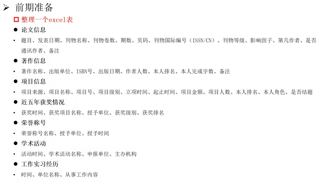 由于目前许多单位都需要网申,流程较为繁琐,但网申系统要求的信息事实上大同小异,赵心慧师姐建议大家根据个人经历梳理一个excel表格,包括论文著作信息、项目信息、获奖情况、学术活动、工作实习经历等,相当于详细版的简历;对于相关的佐证材料,也可以整理成电子版和纸质版文件夹,在网申和面试材料提交时可以大大节约时间,提高求职效率。