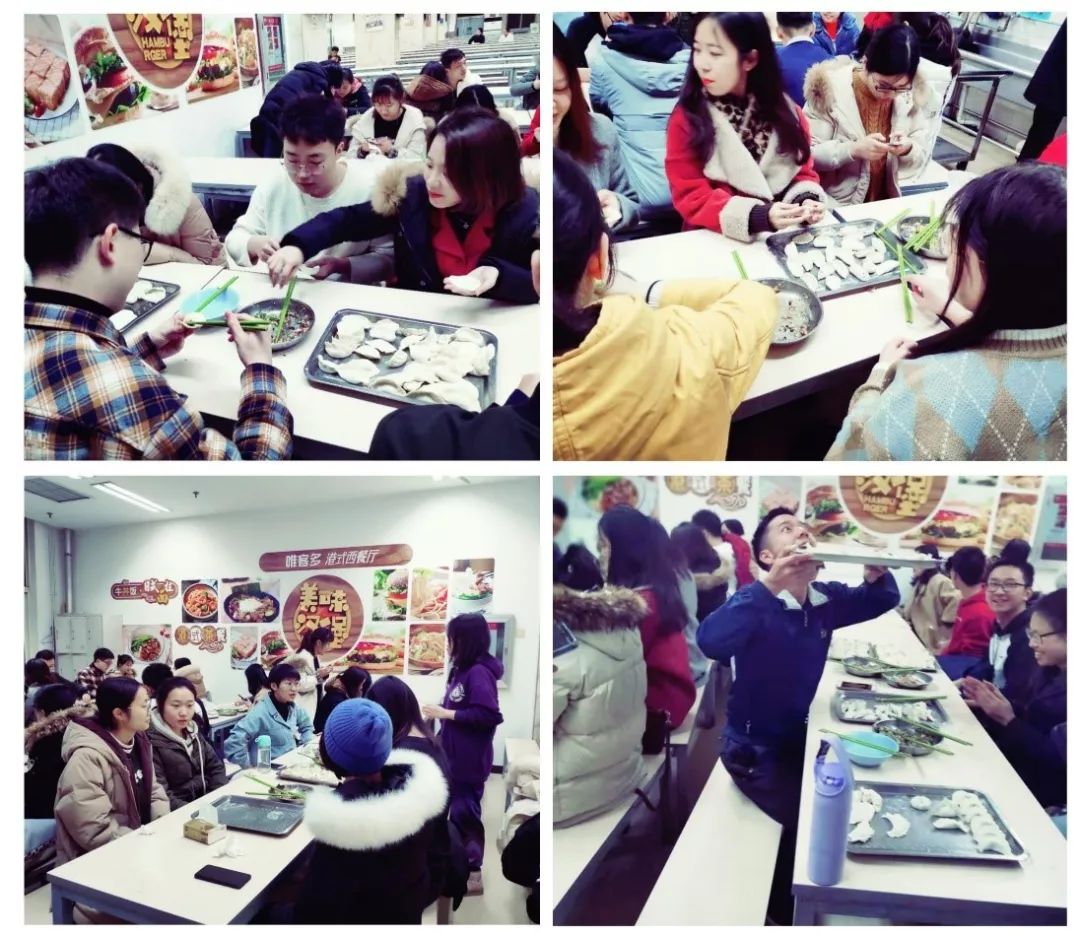 12月19日晚七点,新乐群食堂的二楼,食堂提前准备的三种不同口味的饺子馅与饺子皮已经静静摆好,随着同学们陆陆续续的到来,经管学院冬至饺子节活动热热闹闹地拉开帷幕,温暖了这个料峭寒冬。