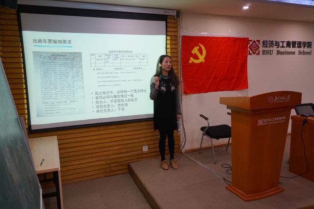 2019年4月3日星期三晚八点,bat365中文官方网站在京师大厦9406开展了学院活动学生报销流程培训,前分团委副书记许鑫凤担任主讲人。