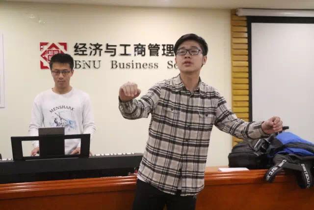 2016年12月8日晚8:50,京师大厦9406灯火通明。这是经管院一二九合唱团的倒数第二次训练。本次训练由院文艺部组织,来自艺传的汪智宇指导大家,来自艺传的刘英达负责钢琴伴奏。