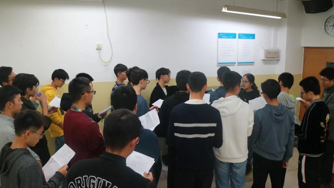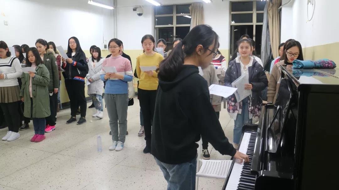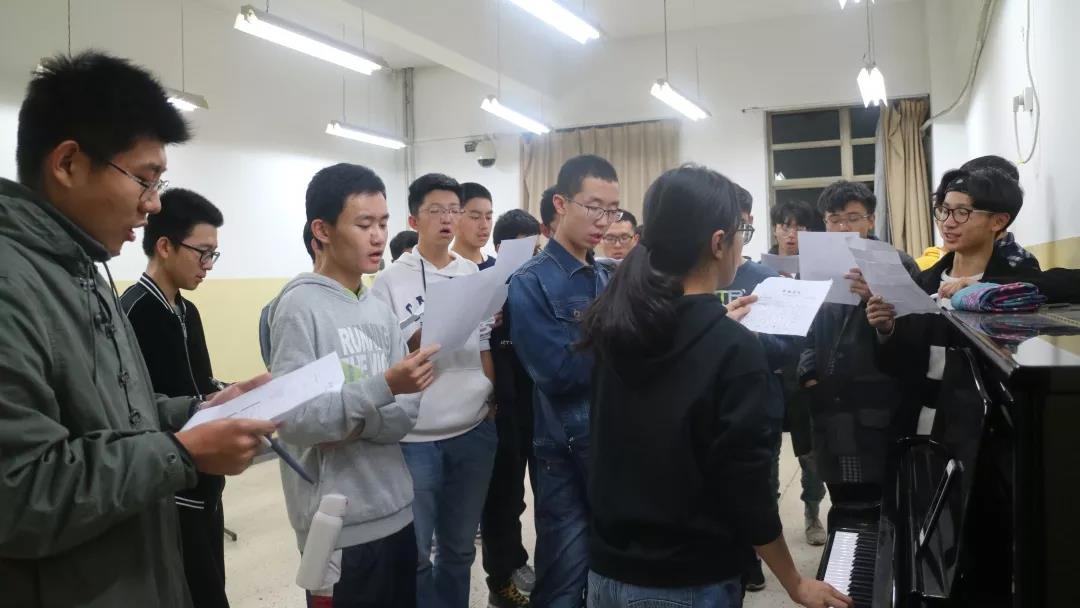 囿于声部平淡的曲调,男生在晚八点便开始了训练。伴着钢琴,他们一遍一遍地熟悉着旋律;跟随领唱的歌声,他们不厌其烦地比对着矫正着自己的音准。虽然这一过程充满着艰辛,但相信最后的结果会使所有人倍感欣慰。