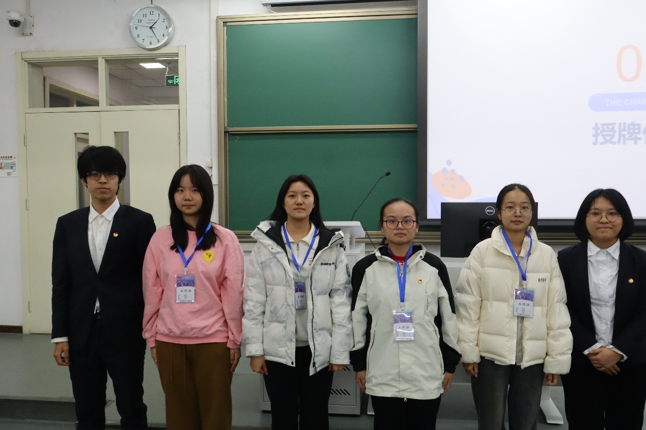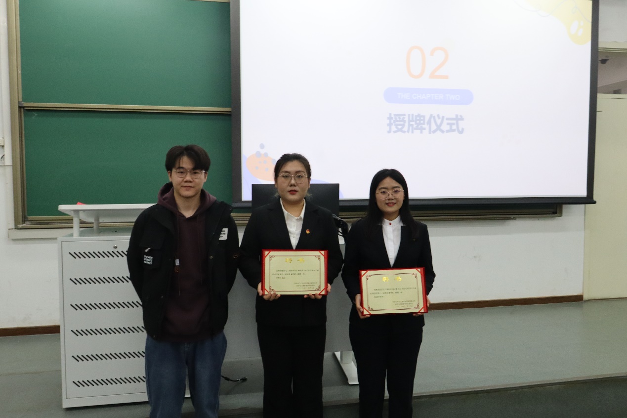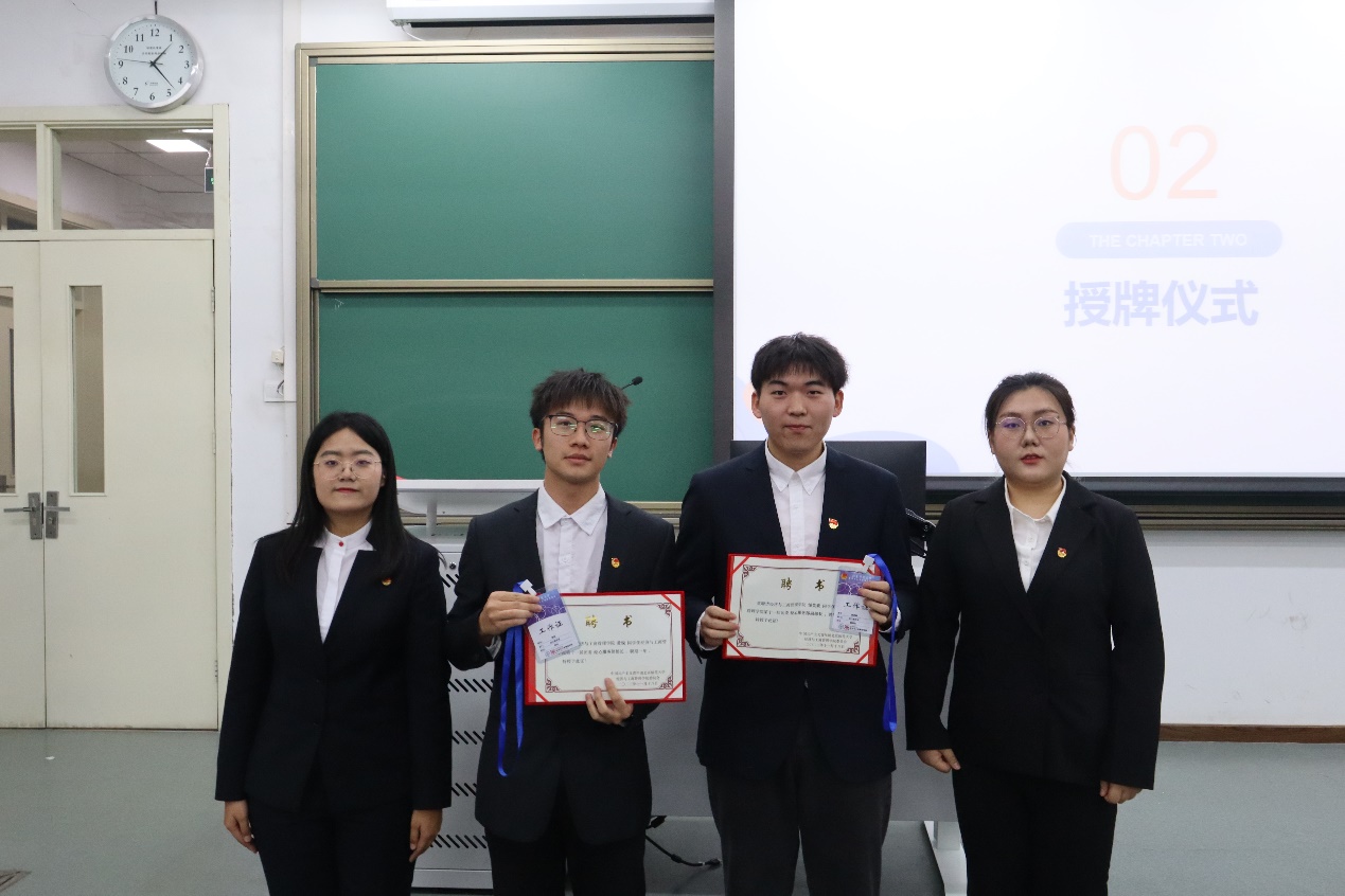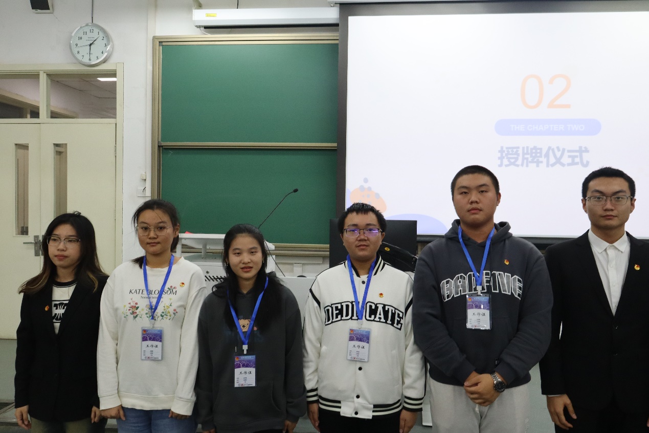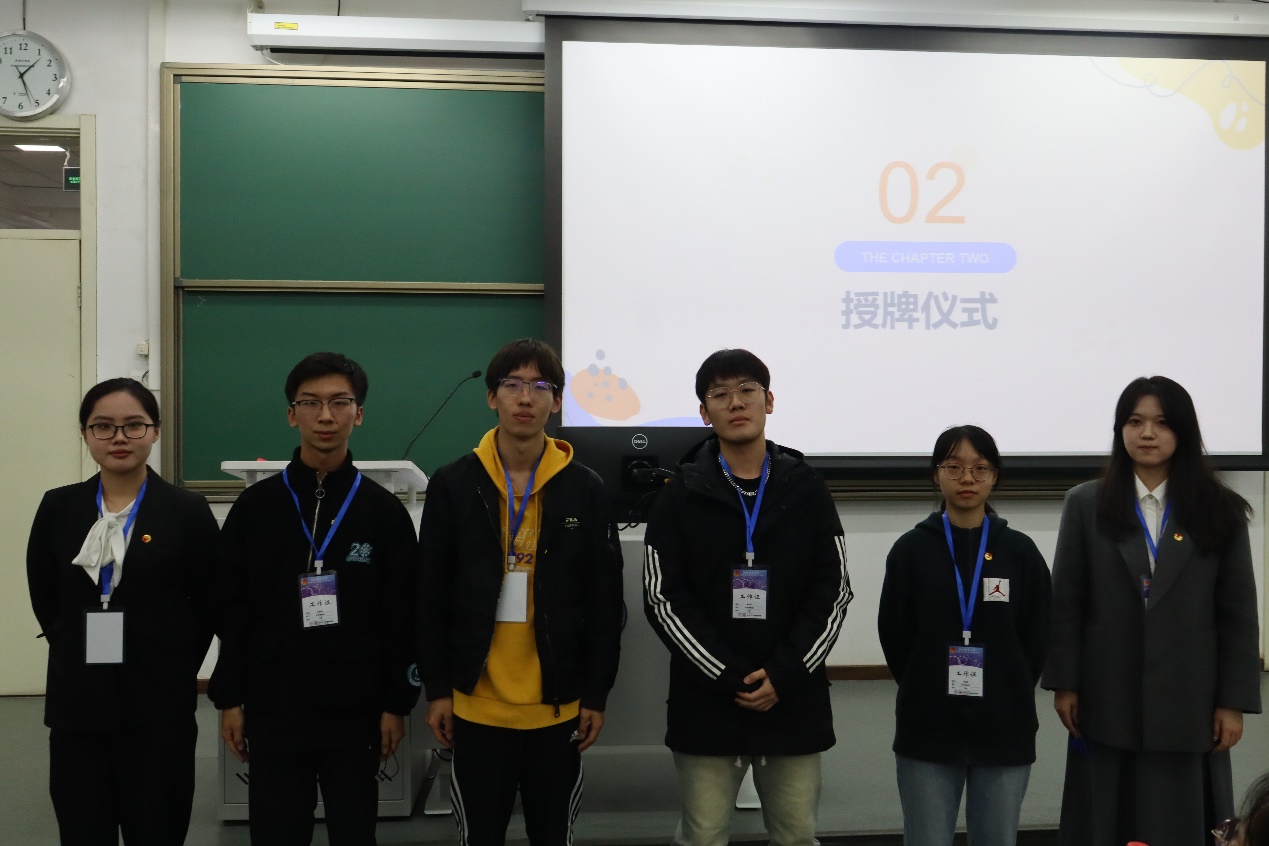 第十届团委副书记张潘岩为新任团委副书记林宜佳、张卜心发放聘书并授牌。随后新任团委副书记为新任部长团发放聘书并授牌。接下来各部门部长为23级新成员授牌。各位新成员从前任成员手中接过的不仅仅是一份份聘书与工作牌,更是一份份沉甸甸的责任。相信在老师们和师姐们的带领下,在大家的共同努力下,团委新成员一定能接继团委优秀传统,勇于开拓创新,更好地为同学们服务。