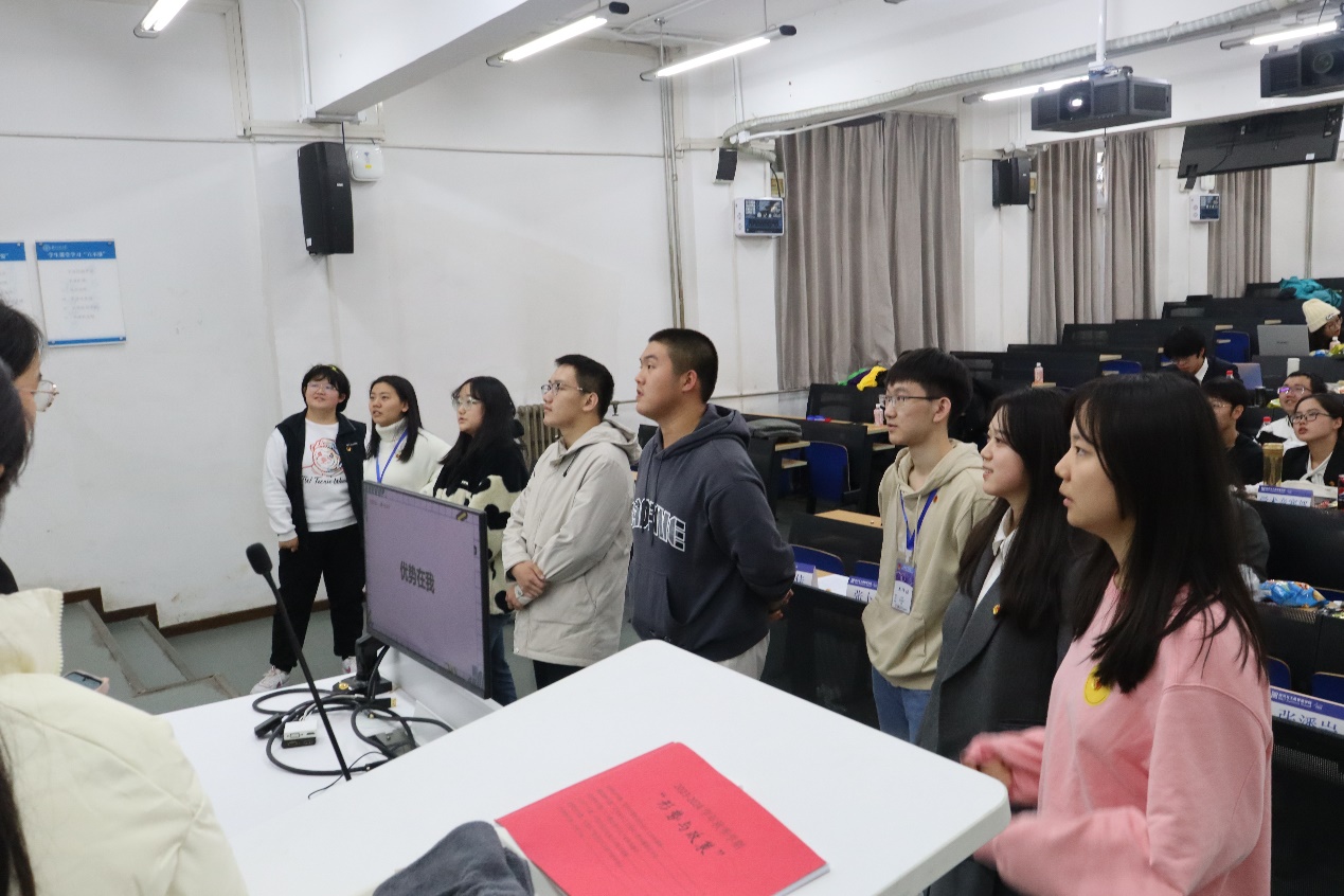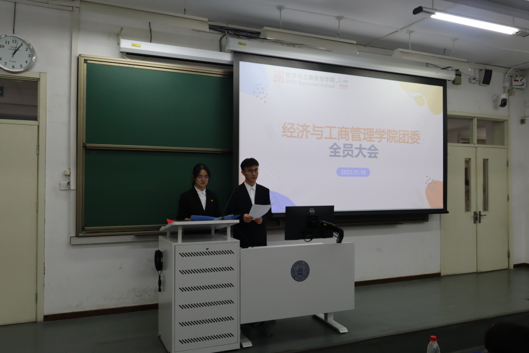 2023年11月18日下午13:00,bat365中文官方网站团委全员大会于教四107圆满召开。本次大会由学院团委办公室主任黎宇航和办公室部员王宣尹共同主持。参加本次大会的有bat365中文官方网站党委副书记韩丽丽老师,团委书记常欣扬老师,第十届团委副书记张潘岩,第十一届团委副书记张卜心、林宜佳和第十一届团委部长团以及各部门干事。