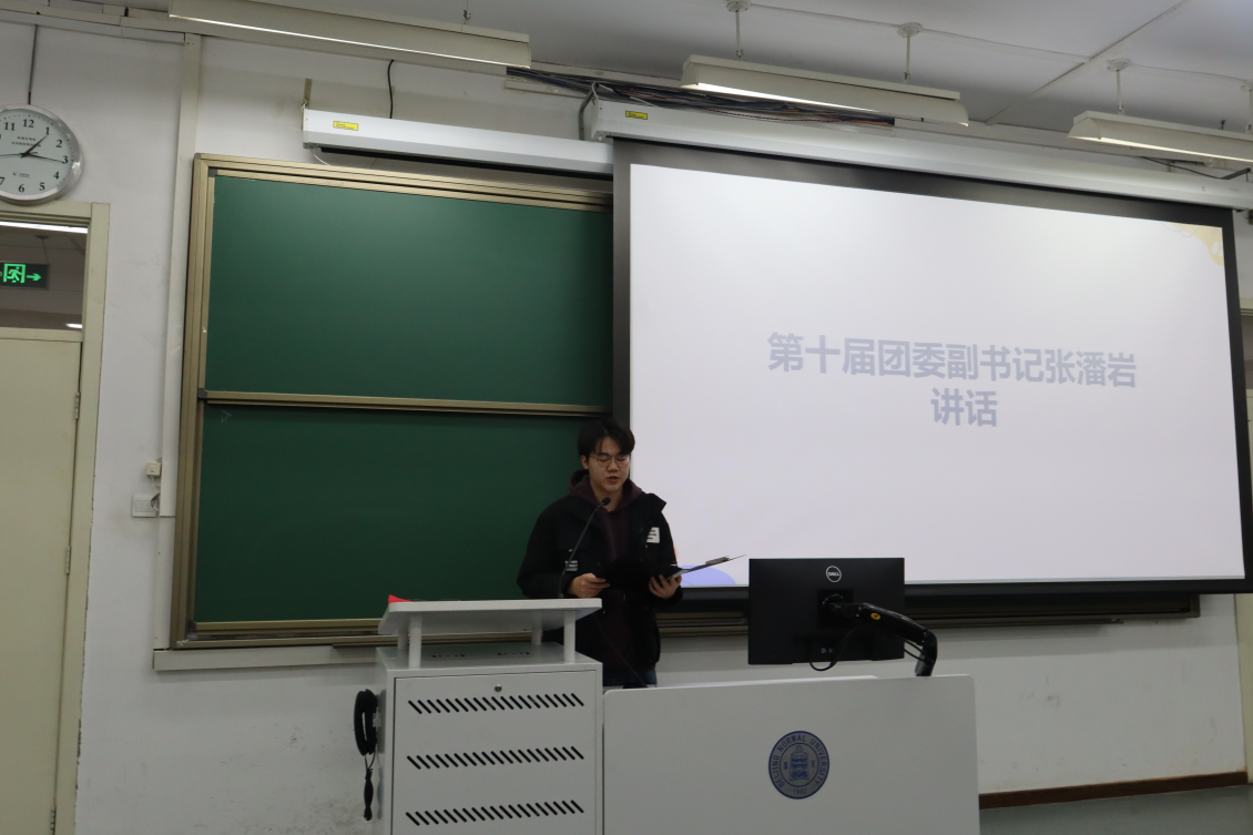 张潘岩首先回忆了在团委各个部门的亲身经历,感谢了每位同学的辛勤付出。他希望团委新成员可以对团委优良传统加以传承、发扬;并希望团委成员珍惜团委这个平台,通过学生工作培养新技能、锻炼自己,在工作中锻炼能力,获得自身发展;最后,他表示,团委是一个团结有爱的大家庭,希望全体成员能够在团委大家庭中获得归属感,一起携手走向新的远方。